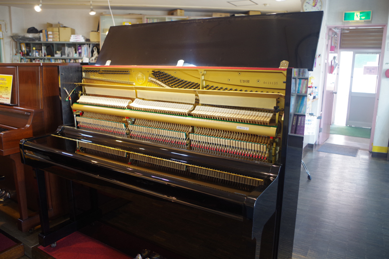 ヤマハアップライトピアノのスタンダードモデルUシリーズで高さが121cmとコンパクトモデルです。もう一つの主流モデルのU3シリーズ131cmと比較して10cm背が低く、音が…と言われることもありますが121cmの方がお部屋で圧迫感が無く、あえてこの高さをお選びになるお客様も多数いらっしゃいます。