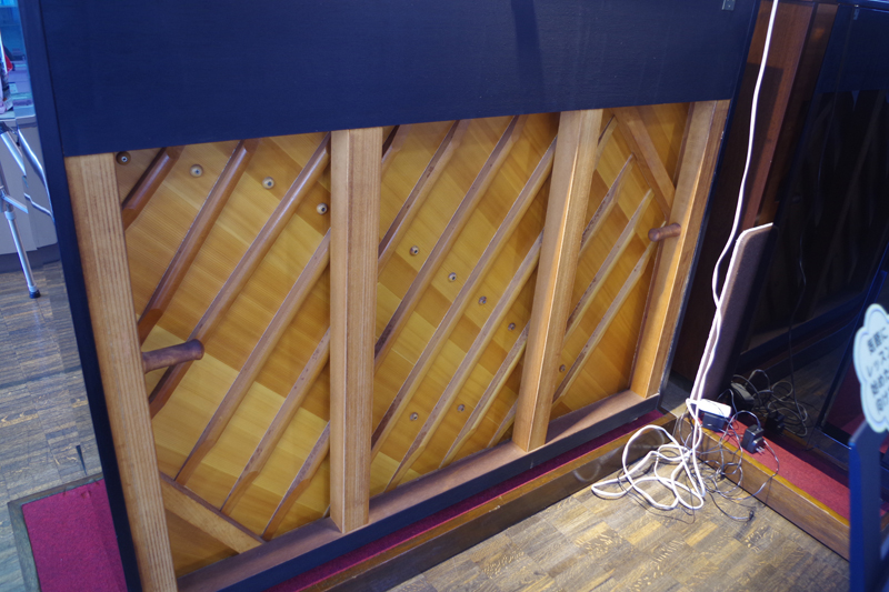 金属部分の磨き、全体の外装クリーニングはお店で終えました。2日に渡り調律・調整終わりました。が、内部調整はまだ実施出来ていません。今月下旬に内部調整出来ると思いますが、現状で試奏いただけますのでご興味のある方はお早めにご予約下さい。